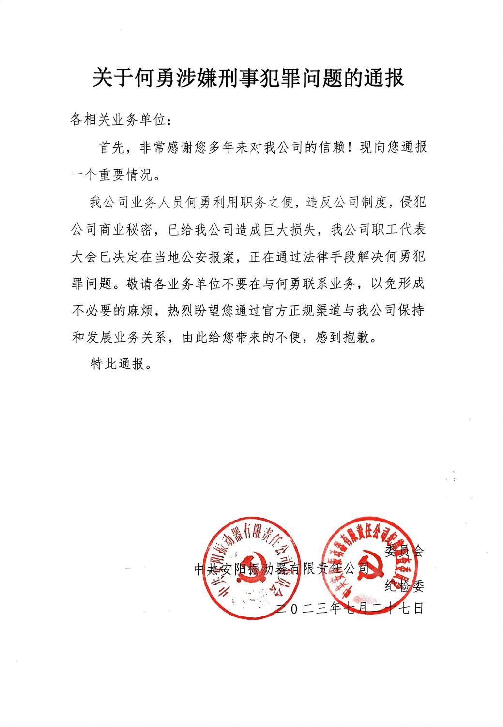 關(guān)于何勇涉嫌刑事犯罪問題的通報(bào)